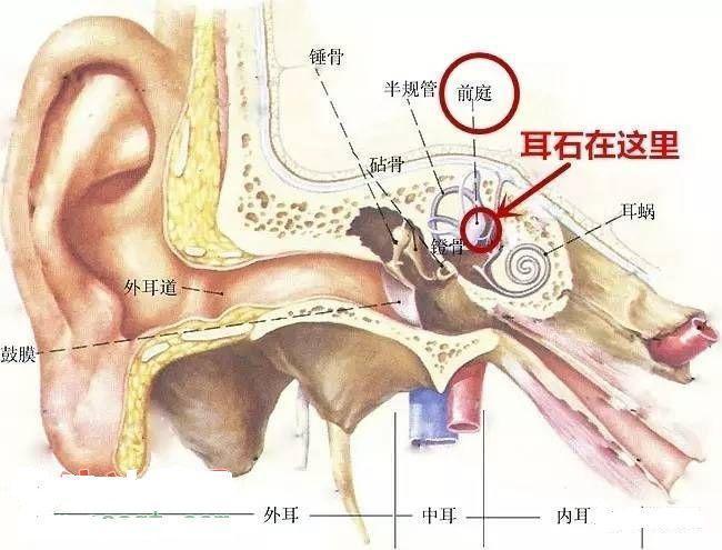 耳石在正常情況下粘附在耳石膜上,當(dāng)因某些因素導(dǎo)致耳石脫落并進(jìn)入內(nèi)耳淋巴液時(shí),這些“小石頭”就會(huì)隨著頭位的改變?cè)诎胍?guī)管內(nèi)滾動(dòng),刺激半規(guī)管毛細(xì)胞,從而引發(fā)眩暈,這就是所謂的“耳石癥”。